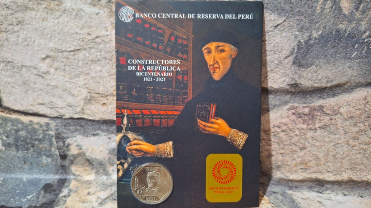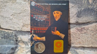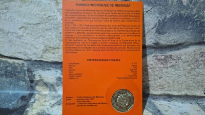 LINDO ENCARTE COM MOEDA DO PERU BICENTENARIO *FLOR DE CUNHO