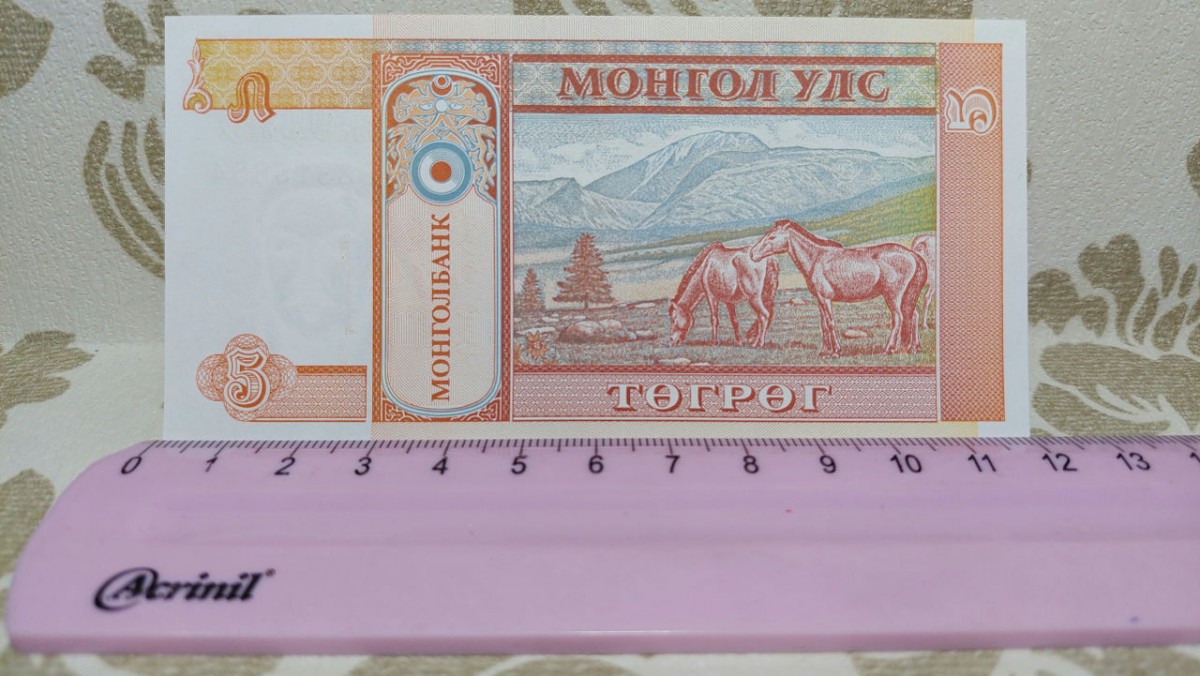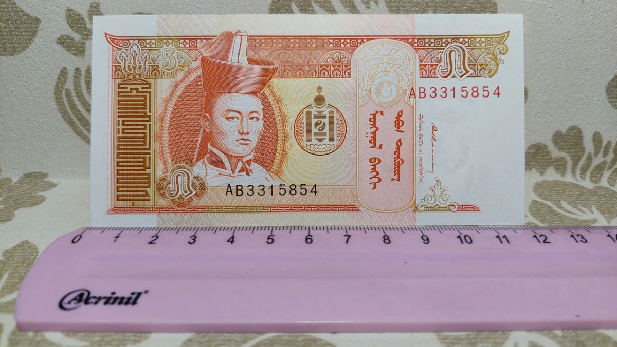 CÉDULA DE 5 TORPOR DA MONGOLIA NO ESTADO DE *FLOR DE ESTAMPA