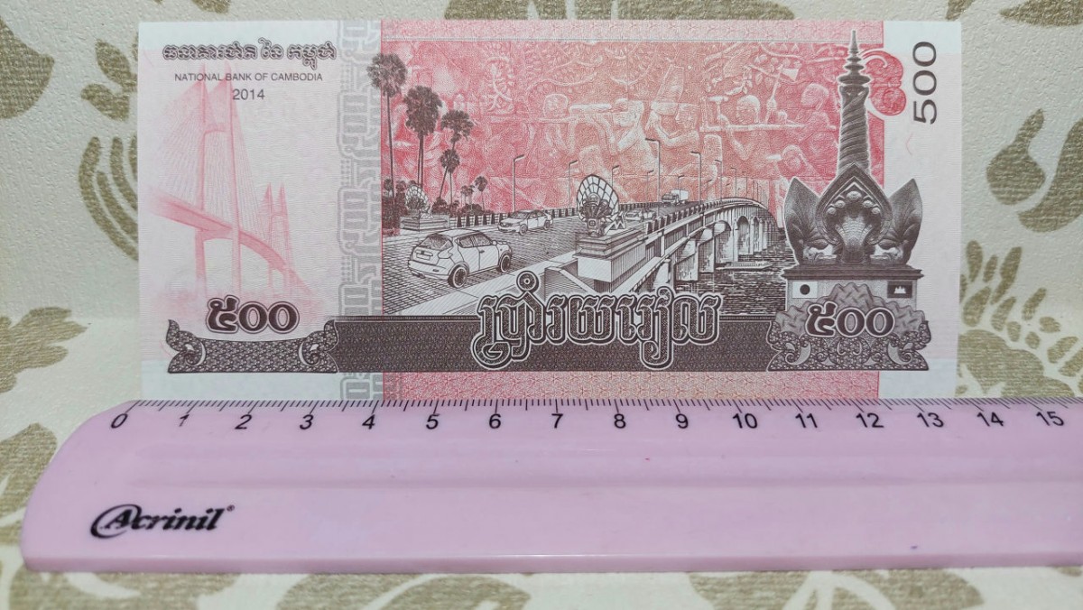 CÉDULA DE 500 RIELS DO CAMBOJA DATA DE (2014) NO ESTADO DE *FLOR DE ESTAMPA