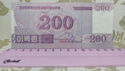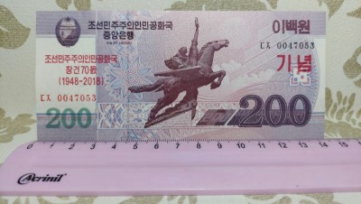 CÉDULA DE 200 WON CORÉIA DO NORTE DATA DE (2018) NO ESTADO DE *FLOR DE ESTAMPA