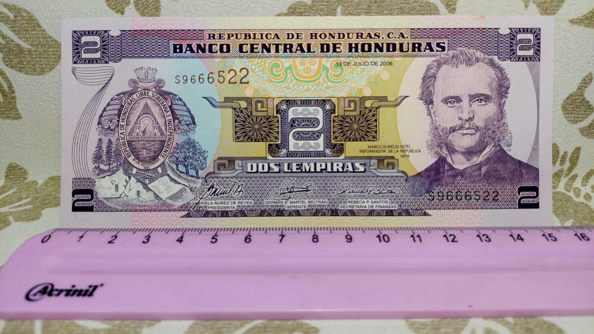 CÉDULA DE 2 LEMPIRAS DE HONDURAS DATA DE (2006) NO ESTADO DE *FLOR DE ESTAMPA